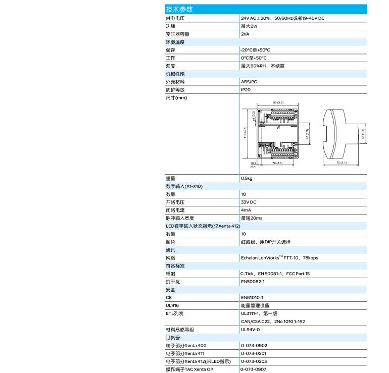 • Xenta411/412數字輸入模塊